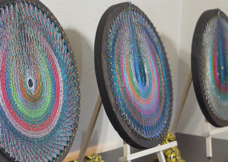 23才の時、ストリングアート糸かけ曼荼羅とオラクルカードを用いたカードリーディングをコラボさせて、作品を通じて持つ人を開運に導くことを自分の仕事とすることに目覚める。